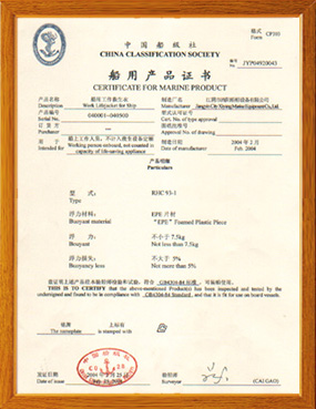 本公司具有完善的计量测试设备,健全的技术质检体系。救生圈、救生衣、健全的技术质检体系。公司主要生产救生圈、救生衣、救生灯具、船用配件等系列产品,产品品种齐全、性能符合1974年SOLAS公约,1996年修正案要求,经中国船级社认可。